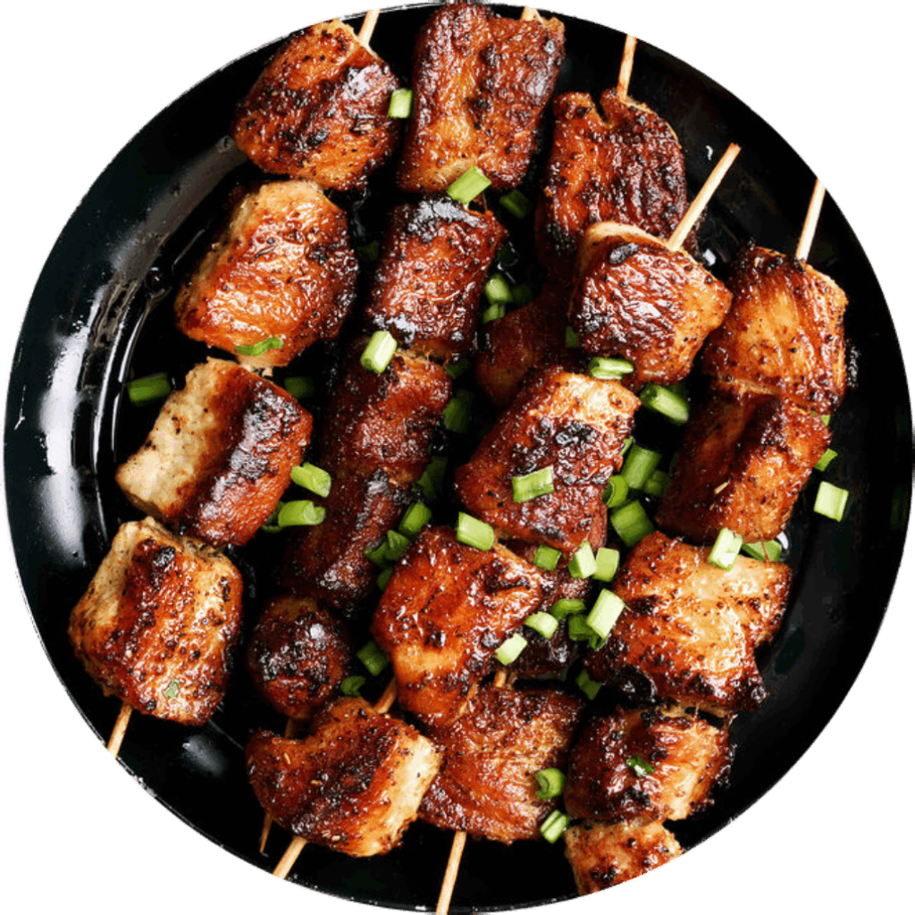 Juicy, marinated chicken skewers grilled to perfection with bell peppers and onions, served with a tangy, flavorful sauce. A delightful treat!
